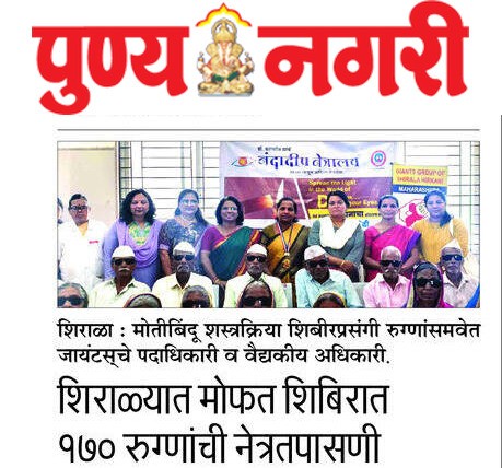 Latest News शिराळ्यात मोतीबिंदू शस्त्रक्रिया पूर्व तपासणी शिबिर जायंट्स वेल्फेअर फाउंडेशन आणि जायंट्स ग्रुप यांच्या संयुक्त विद्यमाने शिराळा येथे मोफत...