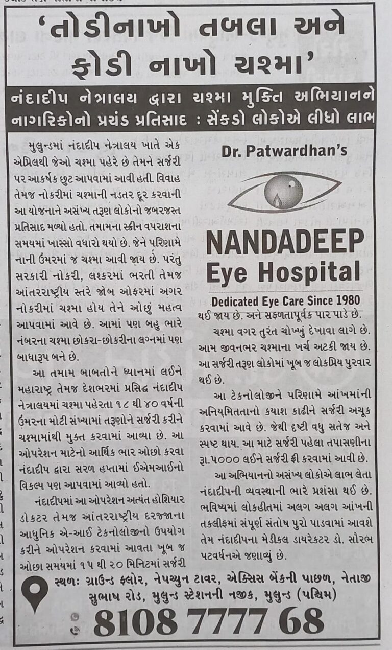 Latest News Nandadeep’s Mulund Drive Frees Youth from Glasses Nandadeep Netralaya, Mulund, launched a spectacle‑removal campaign on 1st April, offering...