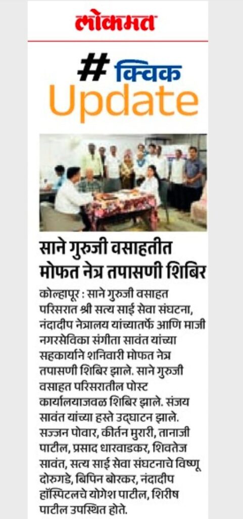 साने गुरुजी वसाहत परिसरात नंदादीप नेत्रालय, सत्य साई सेवा संस्था व माजी नगरसेविका संगीता सावंत यांच्या सहकार्याने मोफत नेत्र तपासणी शिबिर आयोजित करण्यात आले.