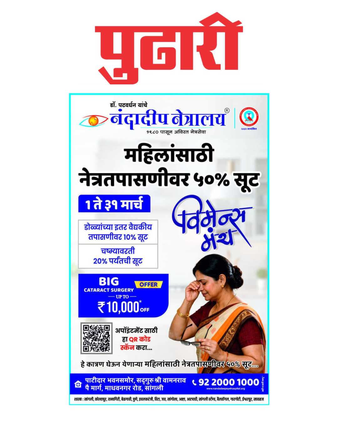 Latest News नंदादीप नेत्रालय तर्फे पंढरपूर येथे LASIK शिबिर 2026 २२ मार्च रोजी पंढरपूरमध्ये नंदादीप नेत्रालयाचे LASIK शिबिर. तज्ज्ञ डॉक्टरांच्या मार्गदर्शनाखाली सुरक्षित प्रक्रिया करून चष्म्यांपासून मुक्ती मिळवा आणि स्पष्ट दृष्टीसह जीवन अनुभवायला सुरुवात करा.