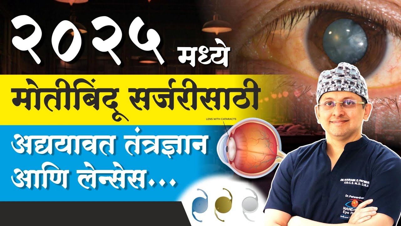 नमस्कार मी डॉक्टर सौरभ पटवर्धन नंदादीप नेत्रालय आणि या व्हिडिओमध्ये मी थोडक्यात माहिती देणार आहे की आता 2025 साल आलेला आहे तर 2025 मध्ये आता मोतीबिंदू मध्ये कुठले अद्ययावत लेन्सेस आणि तंत्रज्ञान उपलब्ध आहे याविषयी थोडक्यात या व्हिडिओमध्ये आपण माहिती [संगीत] घेऊया तर सगळ्यात प्रथम आता जे रिसेंट टेक्नॉलॉजी आता आपल्याकडे उपलब्ध झाली आहे त्याच्यातली सगळ्यात महत्त्वाची टेक्नॉलॉजी आहे ती म्हणजे आपल्या लेन्सचे मेजरमेंट करण्याचे मशीन आपल्या डोळ्याचं मेजरमेंट मोतबिंदूच्या ऑपरेशन च्या आधी अतिशय अचूक होणे हे फार महत्त्वाचं असतं आणि त्यासाठी आद्य असे आयएल मास्टर 700 नावाचे इक्विपमेंट वापरलं जातं या इक्विपमेंटचा फायदा असा की पूर्वीच्या काळी लेन्स मेजरमेंट मध्ये ज्या एरर्स होत्या या मशीनच्या मुळे अतिशय कमी झालेले आहेत म्हणजे जवळजवळ शंभर पैकी 95 टक्के लोकांना या या मशीन मुळे इतकी ऍक्युरेट लेन्स ची पावर निघते की त्यांना चश्म्याची गरज ही भासत नाही अर्थात यापेक्षाही आणखी सुधारणा लेन्सच्या टेक्नॉलॉजी मध्ये पण झालेल्या आहेत त्यामुळे जसं आमच्या स्किल्स ऑपरेशन करण्याच्या तंत्रज्ञानामुळे वाढल्या आहेत तसेच या लेन्स मुळे जी रुग्णांची दृष्टी आहे ती ऑपरेशन नंतर अधिकाधिक चांगली व्हावी याचे सुद्धा प्रयत्न केलेले आहेत ह्याच्यातला एक सगळ्यात महत्त्वाचा जो लेन्सचा प्रकार आहे त्याला आम्ही टोरिक लेन्सेस म्हणतो तर हा अतिशय महत्त्वाचा प्रकार आहे ह्याचं कारण असं आहे की ऑपरेंटच्या आधी जर आपल्या बुबळामध्ये वक्रता असेल ज्याला आम्ही सिलेंड्रिकल नंबर म्हणतो किंवा एस्टीमॅटिजम म्हणतो तर तो या टोरिक लेन्सच्या सहाय्याने आपल्याला मिनिमाइज करता येतो किंवा कमी करता येतो आणि ही टोरिक टेक्नॉलॉजी ही कस्टमाइज्ड आहे म्हणजे तुमच्या डोळ्याच्या मेजरमेंट नुसार आपल्याला ही लेन्स मागवून मिळते आणि त्यानुसारच आपण या मोतीचा ऑपरेशन करताना ही लेन्स वापरू शकतो ज्या रुग्णांना टोरिक लेन्सची गरज असते त्यांनी नक्कीच या लेन्सचा वापर करावा जेणेकरून तुमची दृष्टी अतिशय सुस्पष्ट होईल बऱ्याच रुग्णांना मोतबेंदूच्या ऑपरेशन नंतर अशी गरज असते की चश्म्याशिवाय आपल्याला चांगलं दिसावं याच्यात दोन प्रकारच्या नवीन लेन्सेस उपलब्ध झालेल्या आहेत त्यातला पहिला प्रकार प्रकार ज्याला आम्ही ट्रायफोकल म्हणतो ट्रायफोकल याय प्रीमियम लेन्सेस आहेत आणि ट्रायफोकल मध्ये या लेन्सच्या टेक्नॉलॉजी मध्ये काय असतं की त्या लेन्सला सेंटरला काही रिंग्स तयार झालेल्या असतात त्या लेन्सच्या रिंग्समुळं रुग्णाला ती लेन्स बसवल्यानंतर दूरचच नव्हे तर जवळच्या गोष्टी सुद्धा स्पष्ट दिसू शकतात या ट्रायफोकल लेन्समुळे बऱ्य