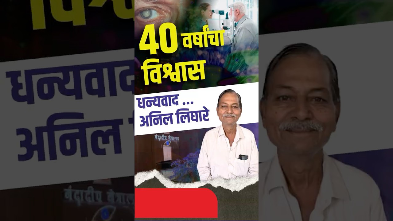 जस आपण एखाद भिंग लावून काही लहान बघू बघतो तशा पद्धतीने मला भिंग न लावता एवढ्या स्पष्ट आणि क्लिर दिसतात नंदादीप हॉस्पिटल हे आभार संपूर्ण त्यांच्या वाचमन पासून ऑपरेशन थिटर पंजा सर्व टीम अतिशय चांगले आहे नमस्कार मी अनिल लिगाडे राहणार सांगली माझ्या डोळ्याच्या विकारासाठी मी 1986 म्हणजे त्यावेळा त्यांचं लिंगात बोर्डिंग समर हॉस्पिटल होतं दिलीप दिलीप पटवन त्यावेळपासून मी तिथे त्यांना डोळे वगैरे दाखवले माझा प्रॉब्लेम त्या सॉल्व झाला थोडा आणि त्यानंतर मी नंदा दिलीप पटवतन सरांना मी त्या वेळापासून मी ओळखतो आणि आता सांगली त्यांनी नंदादीप हॉस्पिटल चालू केलय ते अतिशय हॉस्पिटल चांगला आहे. मी मोटरसायकलवर प्रवास करत असताना संध्याकाळच्या वेळी मला ते अस्पष्ट दिसायला लागले किंवा काही म्हणजे वाहन चालवताना मला ते अडचण त्रास व्हायला लागला त्यामुळे मी नंदादीप हॉस्पिटल मध्ये येऊन मी तिथं माझे डोळे दाखवले माझा नंबर वगैरे वजनलाय किंवा वाढलाय याच्या तपासणीसाठी मी आलो सौरभ सरांनी माझे डोळ्याची तपासणी केली आणि मला मोतीबिंदू ऑपरेशन करण्याचा सल्ला दिला त्यांच्या सल्ल्यानुसार मी मोतीबिंदू ऑपरेशन केल आणि माझी आता इतकी चांगली दृष्टी झाली इतकी छान दृष्टी झाली जस आपण ए भिंग लावून काही लहान गोष्टी बघू बघू बघतो तशा पद्धतीने मला भिंग न लावता एवढ्या स्पष्ट आणि क्लिर दिसतात नंदादीप हॉस्पिटल हे आभार संपूर्ण त्यांच्या वॉचमन पासून ऑपरेशन थिएटर पण सर्व टीम अतिशय चांगले आहे किंवा ऑपरेशन थिटरची टीम आणि व्यवस्थापनची टीम ही इतकी उत्तम दोन्ही बरोबरीने सेवा देतात अतिशय मन माझं भारवन गेलय मला तर खूप खूप मला असं वाटतं की आपण सर्व डोळ्याबाबतीत काही सल्ला घ्यायचा असेल तर तो नंदादीप मध्येच घ्यावा सौरभ सरांच्याकडून घ्या धन्यवाद [संगीत]