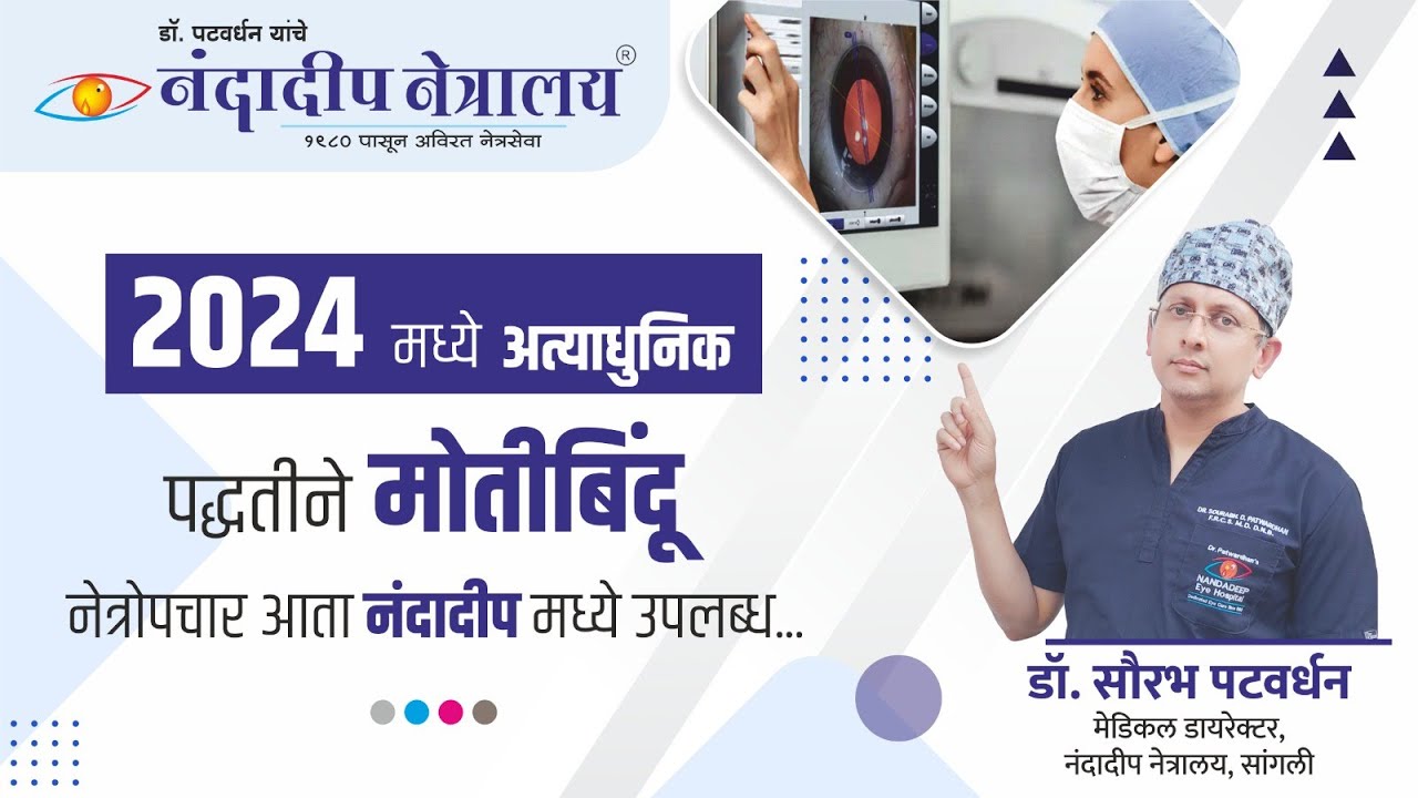 या व्हिडिओ मध्ये मला महत्वाचा सांगायचे की आता 2024 साल लवकरच उजाड़ना आहे आणि आपल्या सगं एक उत्सुकता असणार है की आता 2024 मध्ये सगत लेटेस्ट कुठल्या प्रकारचे मोतीबिंदू ऑपरेशन होत असणार है किंवा होणार है नमस्कार मी डॉक्टर सौरव पटवर्धन नंददीप नेत्रालय संचालक आणि नेत्र तज्ञ मा आमचा सांगली कोल्हापूर बेलगावी रत्नागिरी पुणे मुलुंड इथे सुद्धा शाखा है मोतीबिंदू आता तुम्हाला स्यांना माहि असेल की आता छोट्या सूक्ष्म छिद्र काढणे म्हणतात आणि त्यामुले जखम खूप छोटी असते त्याला बरेच टाके लागत नाहीत नसते ड्रॉप्स घालून सुद्धा ऑपरेशन होत इंजेक्शन च गरज नसते आणि तुमच जे रिकवरी असते दृष्टी च ती सुद्धा खूप फास्ट होते अवग पाच ते सात दिवसात तुम्ही पर्वत कामाला पण लागू शकता त्यामुले दीर्घ का विश्रांती च गरज नसते किंवा दीर्घ का तुम्हाला पाणी धू याच्या पासून लांब राहण्याची गरज नसते तुम्ही अक्षरशः आठवन नंतर रूटीन सगं काम करू शकता पाणी लावल तरी चालू शकत डोला रुटीन काम स्वय पाक दैनंदिन कामकाज तुमच मोबाईल लॅपटॉप वापर हे सगं सुद्धा आठवडा चालू शकत तर अशी ही नवीन तंत्रज्ञान आलेला आहे या शिवाय नवीन इमेज गाइडेड सर्जिकल प्रोसीजर्स आलेले आहेत त्यामुले आपल्या डोल्याचा नंबर ऑपरेशन नंतर किती कमीत कमी लगावा यासाठी आम्ही काजी घेऊन हे ऑपरेशन करतो या शिवाय नवीन लेंस च पद्धती सुद्धा आलेले याचा म ट्राय फोकल लेंस आहेत एक्सटेंडेड डेप्थ ऑफ फोकस लेंस आहेत या सगं मध्ये एडवांस मोनोफोकल नावाच्या लेंस आलेले आहेत सगम टोरिक लेंस है जमु सिलेंडर कल नंबर कमी होतो त्यामुले रुग्णालय करून दिसला पाहिजे अशा लोकांसाठी सुद्धा विशिष्ट लेंस उपलब्ध है कही लोकांना असत की मला लांच फक्त क्लियर दिस महत्वाची गरज है जवच कमी दिसला तरी चालेल अशा लोकांना सुद्धा वेग लेंस च उपलब्धता है त्यामुले आजकाल आम्ही ज्याला म्हणतो कस्टमाइज कैटरेक्ट सर्जरी म्हणजे तुम्हाला तुमच्या डोला कुठली योग्य आहे अशी लेंस वापरून त्याची योग्य पद्धतीने इमेज गाइडेड डी असि स्टेट सर्जरी आजकाल आही करतो आणि त्याचा खूप फायदा आपता रुग्ण ना होतात है म गेल्या 20 ते 30 वर्षा मध्ये मोतीबिंदू च ऑपरेशन मध्ये इतकी प्रगती झालेली आहे त्यामुले बरच रुग्णालय ठेवा ट्राई फोकल लेंसेक्स लेंसेक्स टोरिक लेंसेशन डी असिस्ट सर्जरी अशा वेग वेग नवीन तंत्रज्ञान आणि शस्त्र क्रिया उपलब्ध झालेले