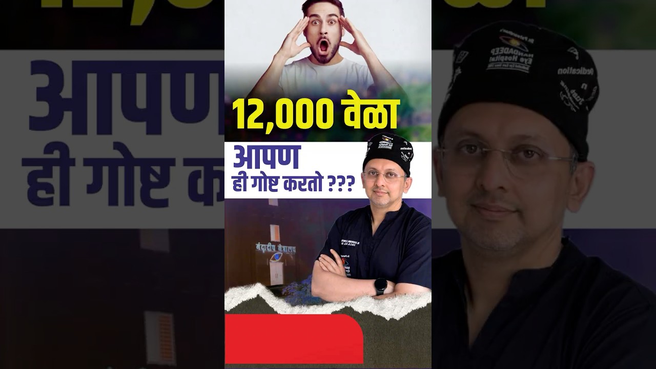 या शॉर्टमध्ये Dr. Sourabh Patwardhan Think Bank पॉडकास्टमध्ये बोलत आहेत. ते सांगतात की आपण रोज सुमारे 12,000 वेळा डोळे झपाटतो, जे डोळ्यांसाठी खूप महत्त्वाचे आहे. पण स्क्रीनवर जास्त वेळ घालवल्यामुळे लोक फक्त 5,000 वेळा झपाटतात, ज्यामुळे डोळ्यांचे पाणी कमी होऊन त्रास होऊ शकतो.