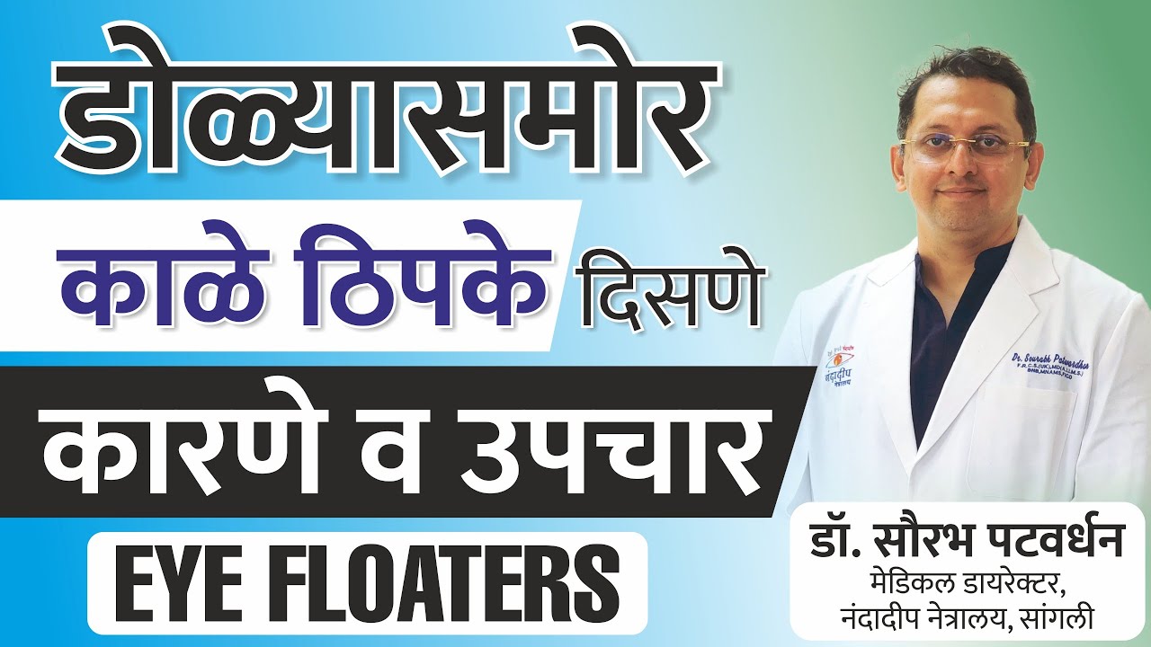 नमस्कार मी डॉक्टर सौरभ पटवर्धन नंदायुक्त नेत्रालय इथे मी नेत्रतज्ञ म्हणून काम करतो आणि आज या व्हिडिओमध्ये आपण पाहणार आहोत की डोळ्यासमोर जे काळे ठिपके जाळ्या ह्या ज्या दिसतात त्याला आम्ही फ्लोटस म्हणतो तर हे कशामुळे दिसतात त्याची ट्रीटमेंट काय करावी लागते का आणि त्यामध्ये काही रिस्क आहेत का याविषयी आपण पाहूया सो हा आपला डोळा आहे इथे आपली लेन्स आहे हे समोरचा बुबुळ आहे आणि हे मागचा पडदा आहे तर या सगळ्याच्या मध्ये हा मध्ये जो जेली सारखा पदार्थ असतो त्याला आम्ही विट्ट्रेस ह्युमर असं म्हणतो हा एक जेली सारखा पदार्थ आपल्या पडद्या आणि लेन्सच्या मध्ये असतो या जेली सारख्या पदार्थांमध्ये वयानुसार किंवा काही वेळा काही शस्त्रक्रिया झाल्या लागलं डोळ्याला तर या काही कारणांमुळे इथे डिग्रेडेशन होत असतं म्हणजे जो विट्रेस जेल असतो त्याच्यामध्ये काही जाळ्या किंवा ठिपके पाण्याचे ठिपके किंवा लाईन्स तयार होतात आणि यालाच आपण विट्रेस फ्लोटस म्हणतो तर हे कशामुळे दिसतात तर ज्यावेळी एखादी जाळी किंवा ठिपका डोळ्यात तयार होतो आता इथे तुम्हाला दिसत असेल आपला हात ज्यावेळी जशी सावली दिसते तुम्हाला हाताची ज्यावेळी हात या टेबलच्या जवळ येतो त्यावेळी ही सावली जास्त डार्क असते आणि दूर गेली हीच सावली कमी होते तर असंच हे डोळ्याच्या विट्ट्रीस मध्ये जे जाळ्या किंवा ठिपके तयार झालेले असतात हे ज्यावेळी पडद्याच्या खूप जवळ येतात त्यावेळी त्याची सावली आपल्या पडद्यावर पडते आणि त्यालाच आपण फ्लोटस दिसणं असं म्हणतो हा जो ठिपका आहे त्याची सावली पडद्यावर पडली की आपल्याला फ्लोटस दिसतात ओके आता हे काही ठिपकाच दिसतो काही लोक पेशंट येतात आमच्याकडे म्हणतात आम्हाला ठिपके नाही दिसतात आम्हाला असे जाळे दिसतात वेगवेगळ्या आकाराच्या किंवा एखाद्या अमीबा सारखं दिसतं किंवा सापासारखं दिसतं तर हे सगळेच हे फ्लोटरचे प्रकार आहेत ते वेगवेगळ्या शेप्स तयार झाल्यामुळे आपल्याला दिसत असतात तर ज्यावेळी आपल्याला फ्लोटर्स येतात त्यावेळी हे अशा प्रकारचे फ्लोटर्स आपल्याला दिसत असतात हे दिसते जाळ्या दिसतायत समोर आपला जसा डोळा हलतो किंवा आपण उघडझाप केल्यावर या फ्लोटर्सचे परिणाम चेंज होत असतात एखाद्या डार्क सरफेस कडे फ्लोटर्स दिसत नाहीत पण जसं आपण आभाळाकडे पाहिलं किंवा स्क्रीनकडे पाहिलं तर मात्र हे फ्लोटर्स जे असतात ते जास्त प्रमाणात आभाळाच्या वर दिसत असतात तर आता ह्याच्यामध्ये रिस्क केव्हा असते जर हे फ्लोट्स असेच दिसत असतील तर याच्यामध्ये कुठलीच रिस्क नसते पण जर हे फ्लोट्स अचानक वाढले म्हणजे थोडेसे दिसत होते पण अचानक मला कालपासून जास्त फ्लोट्स दिसायला लागले तर मात्र आपल्याला डोळ्याच्या पडद्याची तप