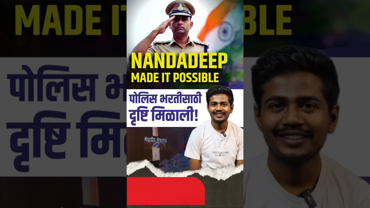 पोलिस भरतीमध्ये प्रवेश घेण्यासाठी आवश्यक असलेल्या उत्तम दृष्टीसाठी मंगेश जमादार यांनी नंदादीप आय हॉस्पिटलमध्ये लेसिक सर्जरी करून घेतली. चष्म्याविना दिसत नसल्याने त्यांना अडचणी येत होत्या. डॉक्टर प्रसन्ना आराध्ये सरांच्या मार्गदर्शनाखाली त्यांनी उपचार घेतला आणि आता ते पूर्णपणे चष्मा मुक्त झाले आहेत. त्यांचा हा प्रवास जाणून घ्या या व्हिडिओतून!