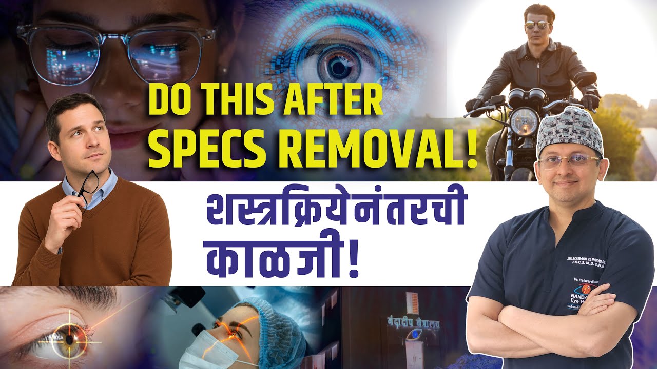 या व्हिडिओमध्ये नंदादीप आय हॉस्पिटलचे संचालक डॉ. सौरभ पाटवर्धन, चष्मा काढण्याच्या शस्त्रक्रियेनंतर दैनंदिन कामे कधी सुरू करता येतील, याबाबत माहिती देतात.