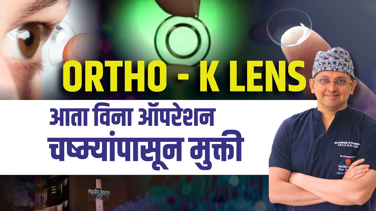 नमस्कार मी डॉक्टर सौरभ पटवर्धन नंदपत नेत्रालय या व्हिडिओमध्ये आपण बोलणार आहोत एक लेन्स जी नंबर कमी करू शकतो म्हणजे कॉन्टॅक्ट लेन्स आहे जो डोळ्याचा नंबर सुद्धा घालू शकते यालाच ऑर्थो कॅरेटोलॉजी असं म्हणतात या प्रकाराला किंवा या ट्रीटमेंटला आणि ही गेली जवळजवळ 15 ते 20 वर्षापासून ही ट्रीटमेंट उपलब्ध आहे आमच्या हॉस्पिटलमध्ये सुद्धा बऱ्याच रुग्णांनी या उपचाराचा फायदा घेतलेला सगळ्यात पहिल्यांदा ही लेन्स काम कशी करते तर ही लेन्स जी असते ती सेमी सॉफ्ट लेन्स आहे आणि ही रात्रीच्या वेळी घालायची असते महणजे ज्यावेळी तुम्ही झोपायला जाता त्याआधी ही कॉन्टॅक्ट लेन्स आपण वापरतो घालतो आणि ती घालूनच आपल्याला झोपायचं असत झोपेत म्हणजे आपण ज्यावेळी झोपलेला असतो त्यावेळी याच्या जॉमेट्रीमळे म्हणजे ही लेन्सच्या जी शेप असतो त्याच्यामुळे आपल्या बुबळावरचा जो एपिथलियम आहे म्हणजे वरचा लेयर आहे त्याच रिशेपिंग होतं म्हणजे जर त्या रुग्णाला फॉर एक्झाम्पल -3 नंबर असेल तर या नंबर प्रमाणे या बुबळाचा जो वरचा लेयर आहे ज्याला आपण इपिथिलियम म्हणतो हा रिशेप होतो आणि बुबळ तेवढं फ्लॅट होतं आणि त्यामुळे दुसऱ्या दिवशी आपण ज्यावेळी ही कॉन्टॅक्ट लेन्स काढून टाकतो तर त्यानंतर आपल्याला चश्मा लावायची गरज लागत नाही परंतु या लेन्सचा इफेक्ट फक्त एक दिवस पुरताच राहतो म्हणजे जर तुम्ही काल रात्री ही लेन्स रात्रभर झोपेत घातली असेल तर नेक्स्ट डे तुम्हाला चश्मा लावायची गरज नसते परंतु जर तुम्ही दुसऱ्या दिवशी रात्री ही लेन्स घातली नाही तर मात्र तुम्हाला त्याच्या पुढच्या दिवशी चश्मा लावावा लागू शकतो कारण याचा इफेक्ट एक दिवसातच पूर्ण जातो काही वेळा तुमचा नंबर जर खूप कमी असेल आणि तुम्ही रेग्युलरली बराच काळ ही लेन्स वापरली तर त्याचा इफेक्ट जास्त काळ टिकू पण शकतो पण जनरली आमचा एक्सपिरियन्स असा आहे की एक दिवसानंतर याचा दुसऱ्या रात्री ज्यावेळी आपण ही लेन्स वापरत नाही तर त्यानंतर त्याचा इफेक्ट जातो आणि त्यामुळेच ही कॉन्टॅक्ट लेन्स फारशी पॉप्युलर नाही कारण ज्यांना तसही दिवसा जर चश्मा लावायचा नसेल तर ते रेगुलर कॉन्टॅक्ट लेन्स सुद्धा वापरू शकतात अर्थात ही लेन्स आता पॉप्युलर होत आहे लहान मुलांमध्ये ज्या लहान मुलांना चश्मा असतो त्यांना बऱ्याचदा शाळेमध्ये गेल्यावर आपल्याला कॉन्टॅक्ट लेन्स देणं थोडसं रिस्की किंवा धोकादायक वाटत कारण तुम्हाला माहिती लहान मुलं शाळेत खेळतात धूळ जाते अशावेळी त्यावेळी कॉन्टॅक्ट लेन्स लावणं हे मुलांसाठी धोकादायक असू शकत परंतु याच मुलांना रात्री कॉन्टॅक्ट लेन्स लावणं हे त्या मनान कमी धोकादायक असतं आणि अशा मुलांना यामुळे दृष्टीसाठी सुद्धा फायदा होऊ शकतो. त्यामुळे अशी 