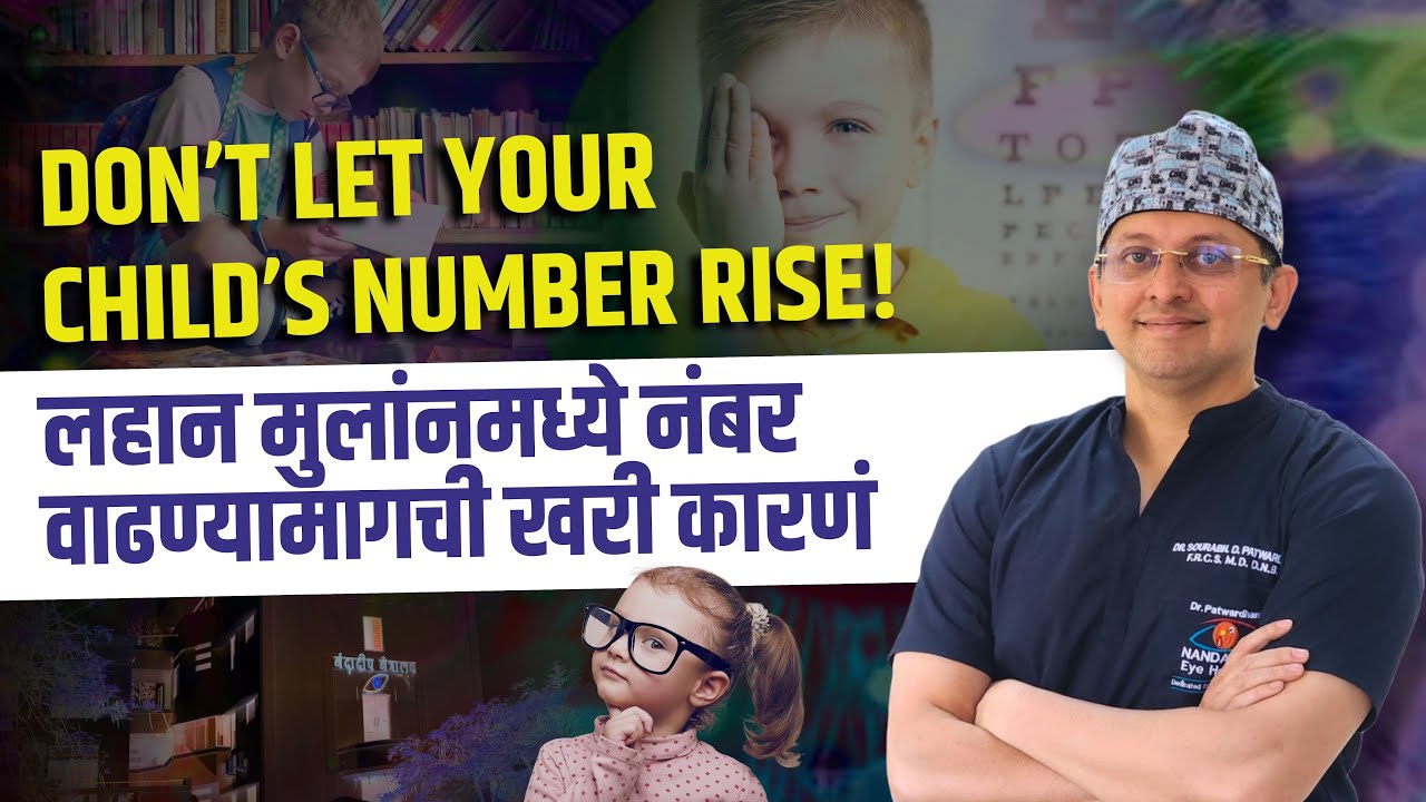 सतत मोबाईल-टॅब वापर, कमी आऊटडोअर अॅक्टिव्हिटी, आणि चुकीच्या जीवनशैलीमुळे लहान मुलांमध्ये डोळ्यांचा नंबर झपाट्याने वाढतो आहे. डॉ. सौरव पटवर्धन (नंदादीप आय हॉस्पिटल) यांनी यामागची कारणं आणि उपाय स्पष्ट केलेत. योग्य सल्ला आणि उपाय केल्यास नंबर वाढणं थांबवता येऊ शकतं. हा व्हिडिओ पाहा आणि आपल्या मुलांच्या डोळ्यांचे आरोग्य जपा!